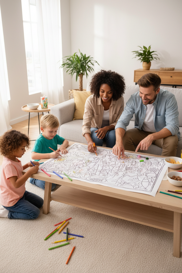 Printed on high-quality paper and made to be spread out on tables, floors, or walls, our posters are perfect for cozy afternoons, family nights, parties, and screen-free fun. Big enough for everyone to color together — and memorable enough to keep or display.