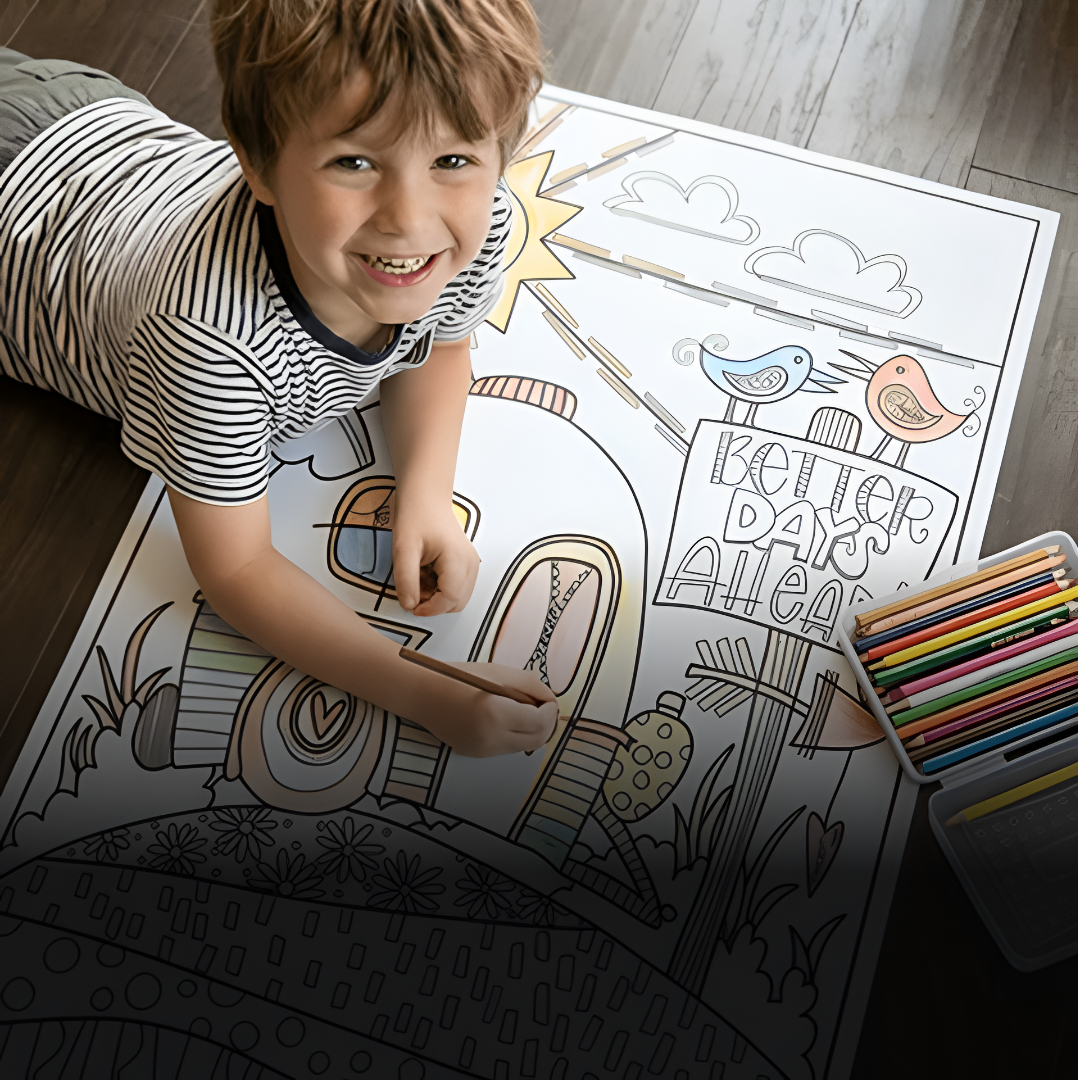 Big paper. Big color. Bigger smiles. These oversized coloring posters turn everyday playtime into a screen-free, color-happy experience kids + grown-ups actually want to join.