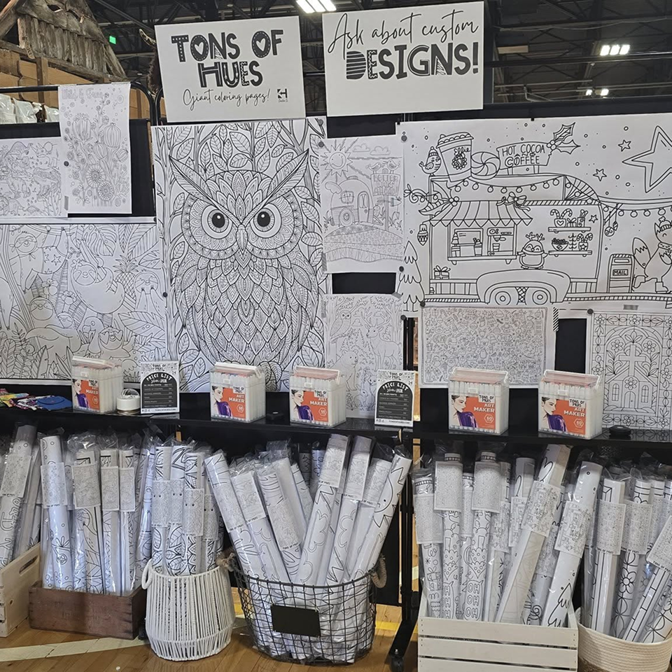 At Tons of Hues, our mission is to spark connection through creativity by designing bold, oversized coloring art that invites all ages to slow down, gather together, and color outside the lines—together.